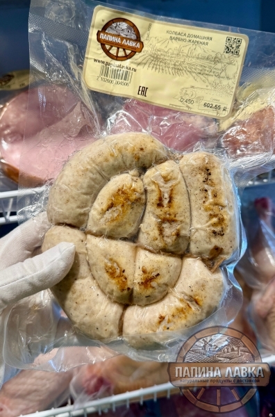 Состав: мясо свинина, грудинка, чеснок свежий, перец черный, соль, сахар, вода