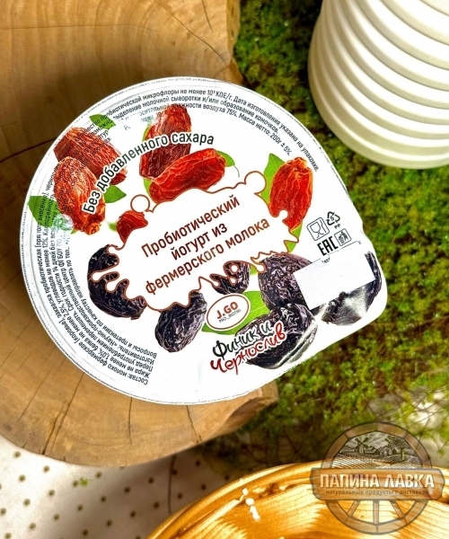 Состав: молоко цельное фермерское (коровье), закваска прямого внесения, чернослив, финики