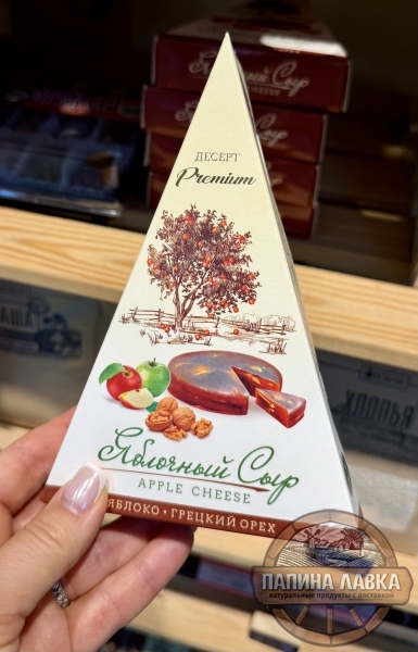 Состав: яблочное пюре, грецкий орех, вяленые яблоки.